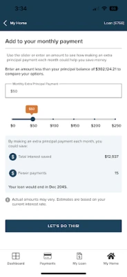 • Calculate the impact of making additional payments on interest cost savings and earlier loan pay off