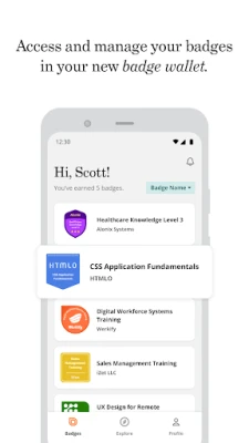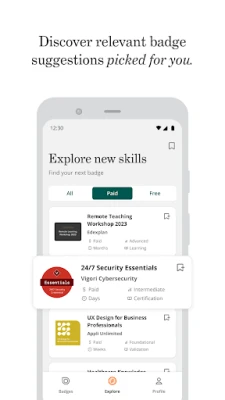 · Discover new skills: Explore badges from thousands of organizations and get personalized recommendations based on your career goals.