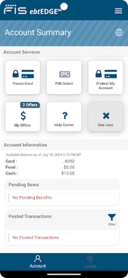 ebtEDGE mobile application simplifies your life when you depend on SNAP or TANF benefits allowing you to view your benefits at the touch of a finger. ebtEDGE allows you to check your balances, review your transaction history. If you have both SNAP and TANF benefits you will have access to view both benefits at the same time.