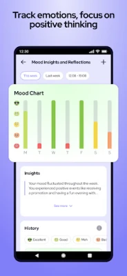 * Advanced Mood Tracker - Monitor your emotional state with our advanced mood tracker, providing detailed insights and analyses that help you understand your mental health patterns and progress over time. This tool is essential for effective stress management and anxiety relief.